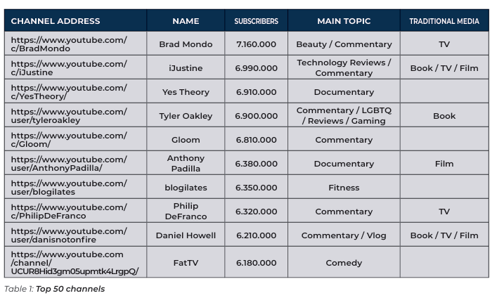 10 The research is covering only those channels that are created by individuals. Branded channels created by companies, public figures and mass media channels are not considered.