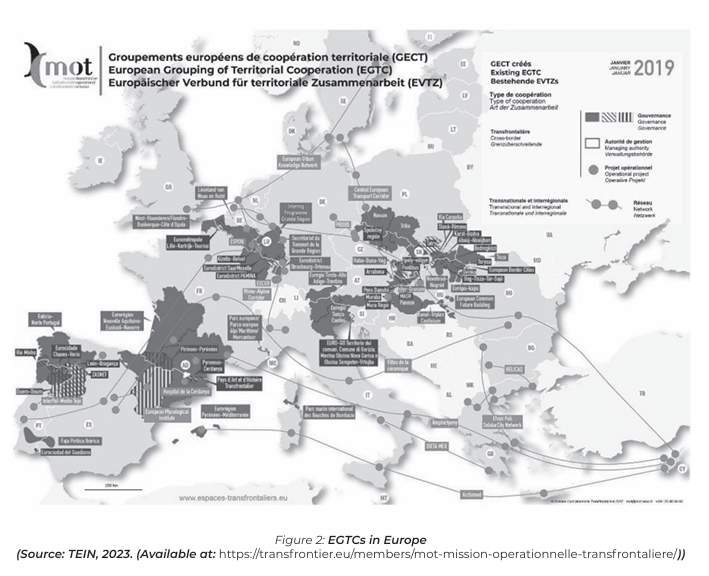 3 The three forms of EGTCs are: 1) cross-border cooperation between adjacent border regions in neighbouring countries; 2) trans-national cooperation between groups of countries and regions, mainly in the field of spatial planning; and 3) inter-regional cooperation between regions or cities in various countries.