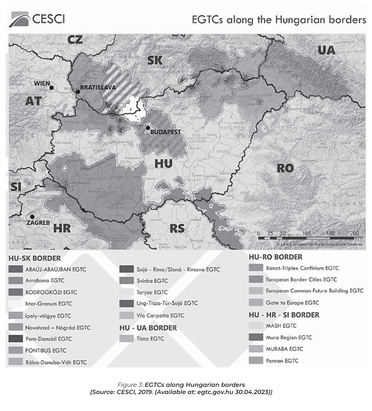 The European Committee of the Regions regularly publishes a Monitoring Report on the development of the European Grouping of Territorial Cooperation. According to the EGTC register (CoR, 2023), in 2023, EGTCs included more than 800 national, local and regional authorities from 20 different Member States and from Ukraine. The last four EGTC Monitoring Reports found that EGTCs focused on Central and Eastern European territories had been established. The dominant type of partnership is composed of local authorities: half of all groupings are powered by the local level. The second largest group comprises EGTCs of regional authorities, with the number of partners ranging between two and six. Half of the recently constituted EGTCs are following this trend, covering territories in Hungary, Romania, Slovenia, the Czech Republic, and Poland. (CoR, 2016, 2017, 2018, 2020). There are currently 25 EGTCs registered in Hungary, 3 of which headquarters in Slovakia Karszt–Bódva EGTC, Pons Danubii EGTC, and Via Carpatia EGTC), 1 in Poland (Central European