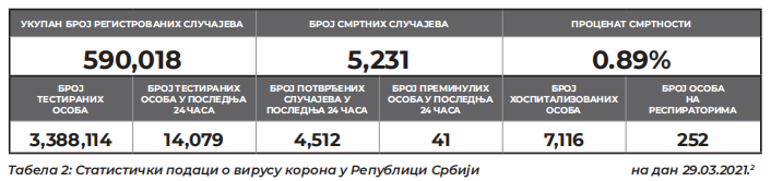 5. СТАТИСТИЧКИ ПОДАЦИ О КОРОНА ВИРУСУ – COVID-19; https://covid19.rs/; (приступљено: 24.03.2021.).